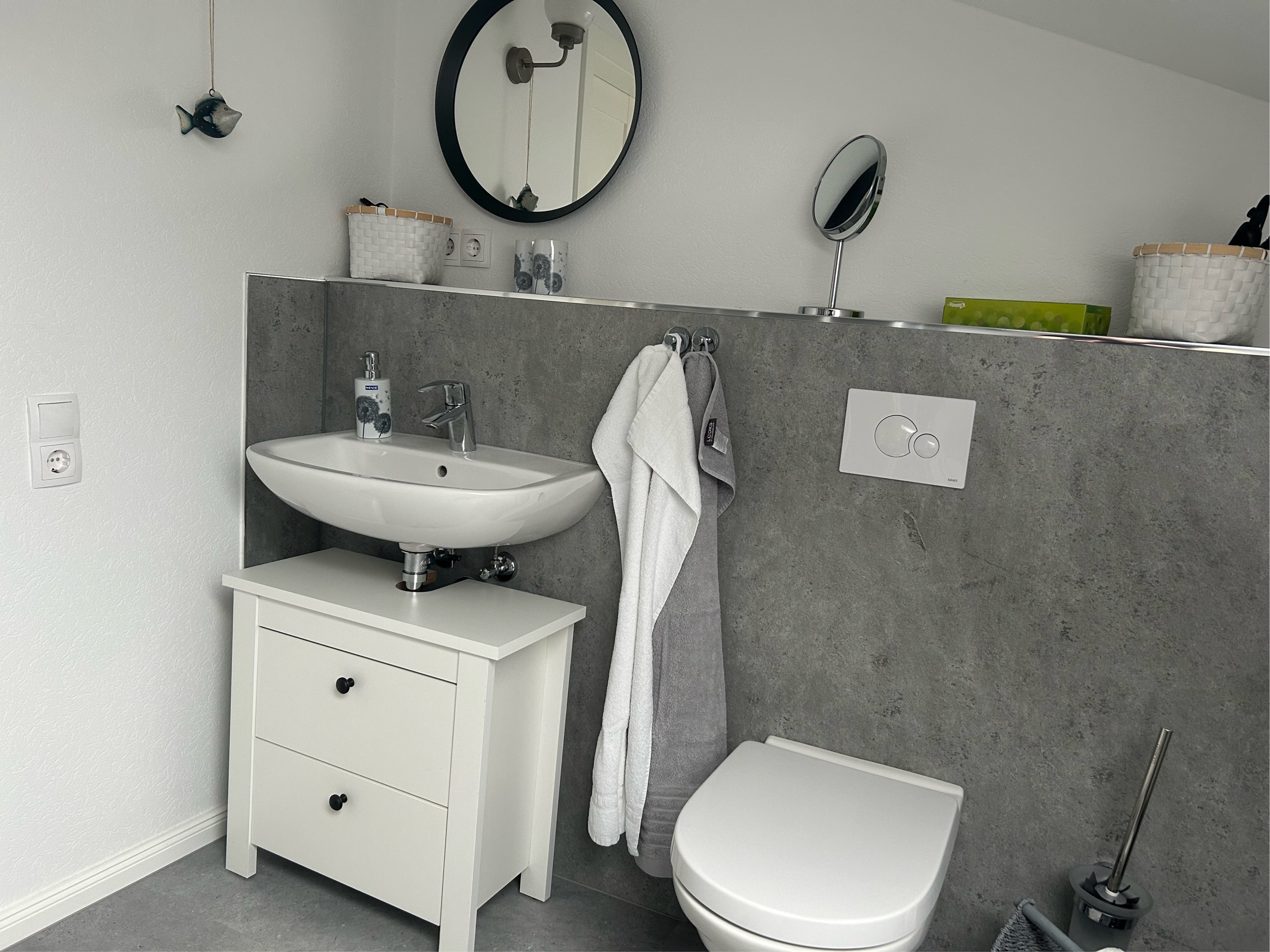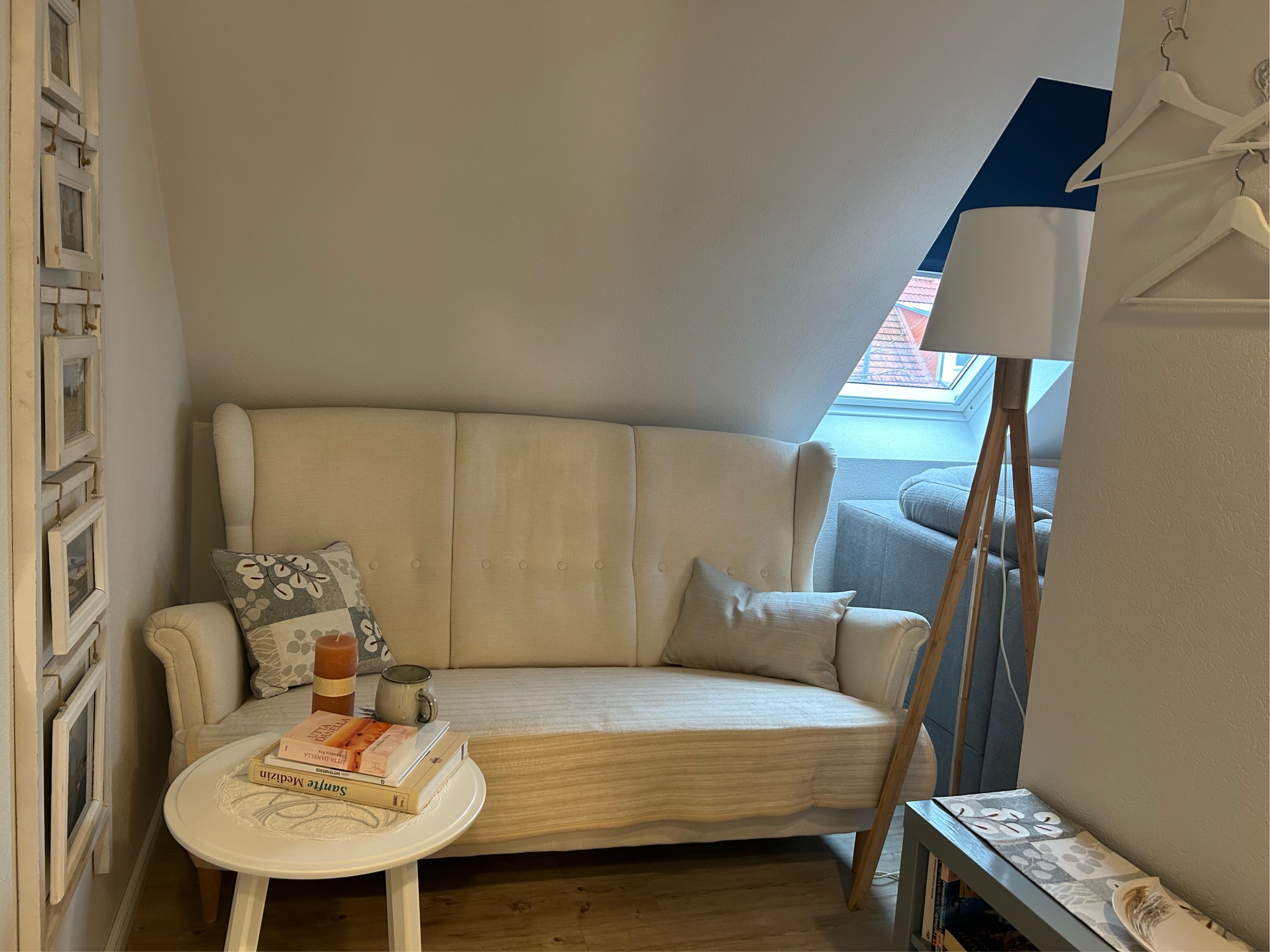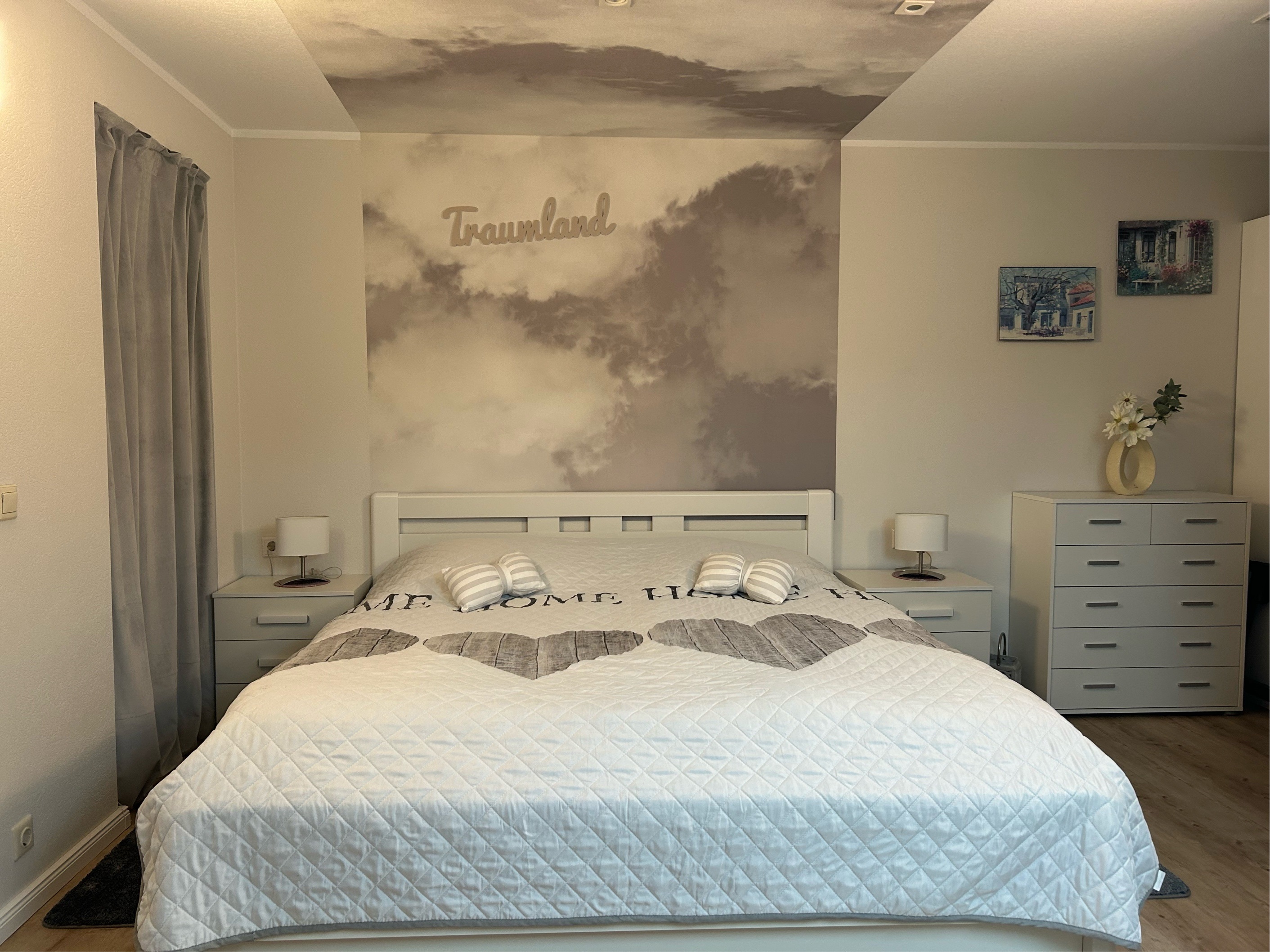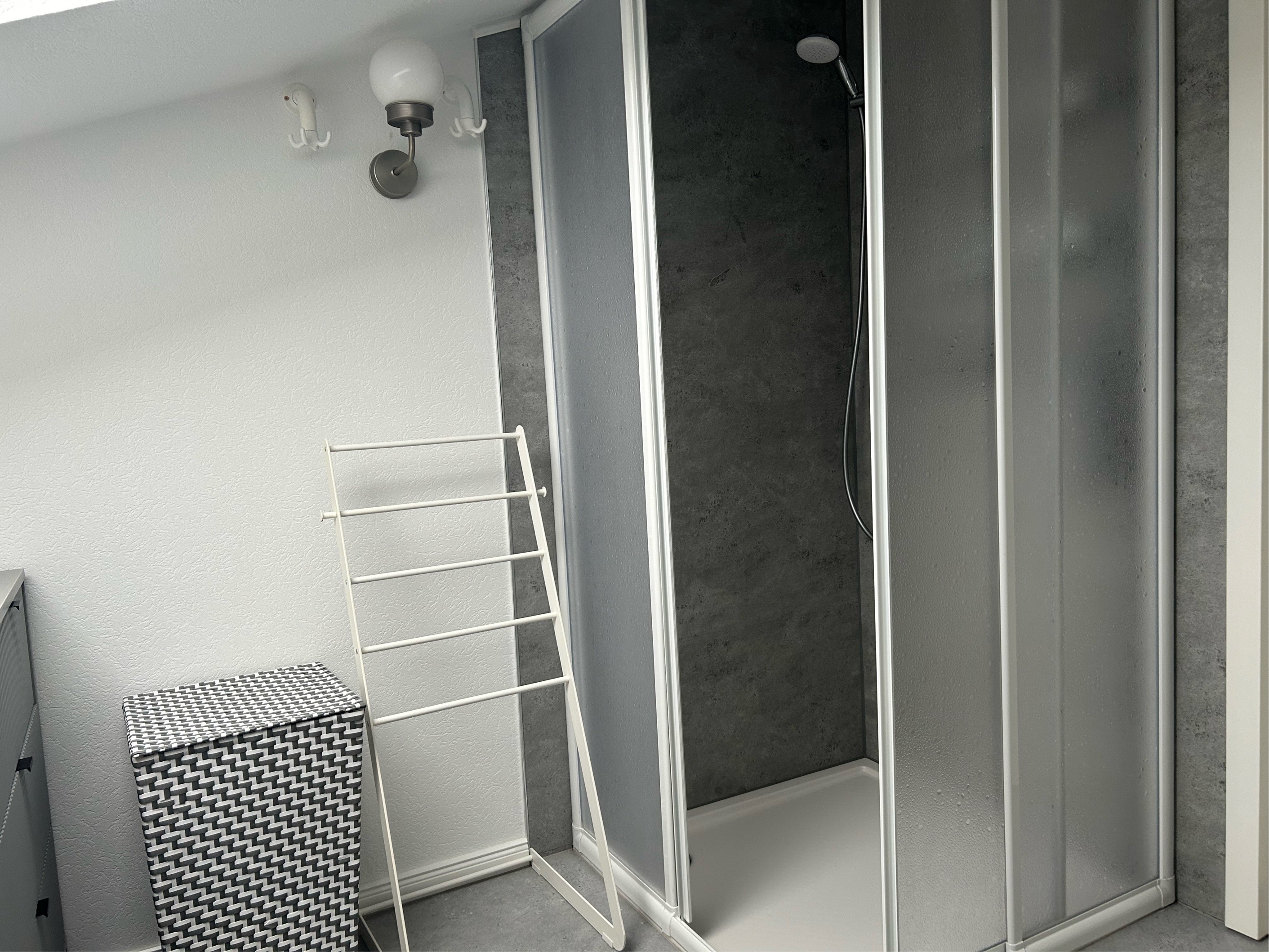 Die Ferienwohnung in der 1.Etage hat eine Fläche von ca. 50 m² und bietet reichlich Platz für eine Familie mit drei Personen. In einer komplett ausgestatteten Wohnküche mit Geschirrspüler, Induktions-Kochfeld, Backofen, Kühl-Gefrierkombination, Kaffeemaschine, Toaster, Wasserkocher sowie Handspüle stehen Ihnen alle Haushaltshilfen zur Verfügung. Ein großer Esstisch, ein Sofa und ein SAT-TV laden zum gemütlichen Essen, Lesen oder Fernsehen ein. Das Badezimmer mit Fenster, Dusche und Fön ist großzügig ausgestattet. Im Schlafzimmer befinden sich ein großes Doppel- und ein Einzelbett, sowie ein geräumiger Kleiderschrank.
